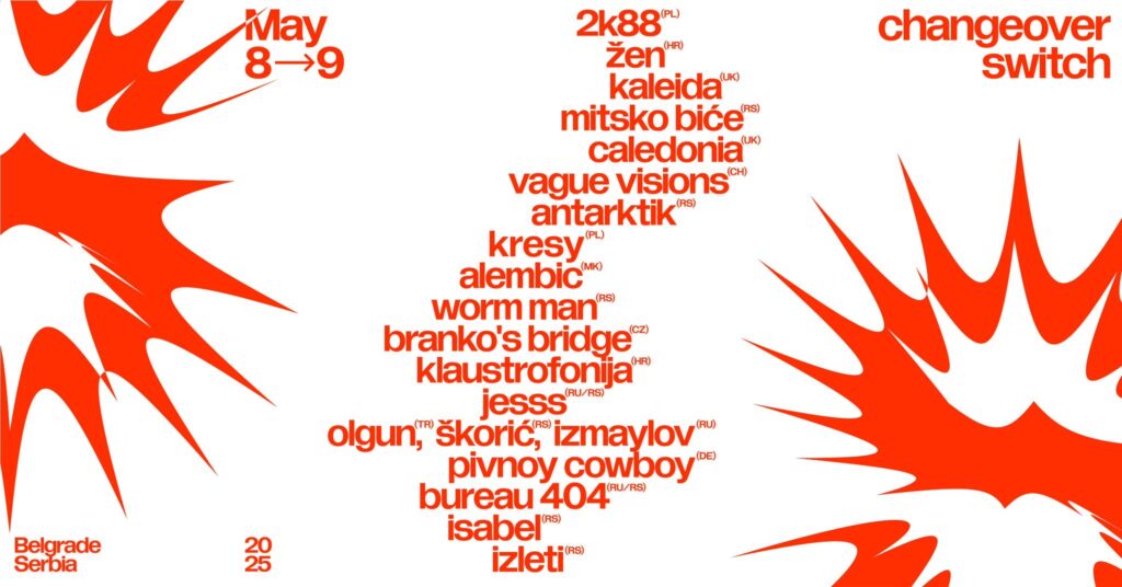 Prolećna Changeover Switch edicija festivala posvećena je predstavljanju novih talenata i DIY duha Balkana i šire. Tokom dva dana, na četiri različite lokacije, na scenu će izaći 20 izvođača različitih žanrova i estetskih pravaca – od hrvatskog queer psihodeličnog punka do britanskog noir popa. Full pass i pojedinačne ulaznice su već u prodaji, a za najodanije obožavaoce, festival nudi i opciju Kkarata, koja omogućava dodatnu podršku razvoju festivala.