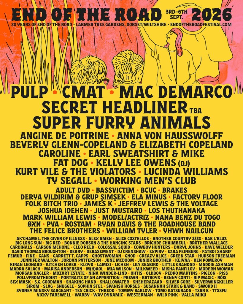 Predstojeće izdanje End of the Road festivala na programu je od 3. do 6. septembra na lokaciji Larmer Tree Gardens u engleskom gradiću Solsberiju. Organizatori najavljuju da ovo još nije konačan izgled programa i da više izvođača možemo očekivati u sedmicama koje slede. Ulaznice za ovaj festival već se nalaze u prodaji, a više informacija možete pronaći na zvaničnom festivalskom sajtu.