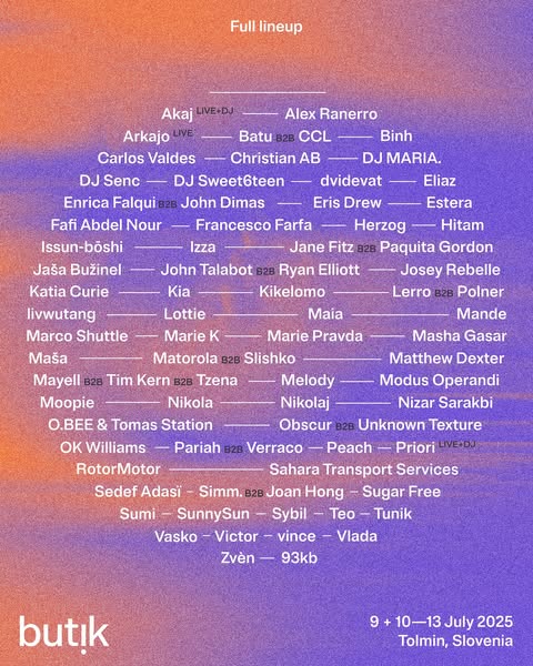 Butik je elektronski festival koji se održava u slovenačkom gradiću Tolminu. Pored danonoćnih nastupa di-džejeva, festival nudi mogućnost kampovanja kao i plivanja u obližnjoj reci.