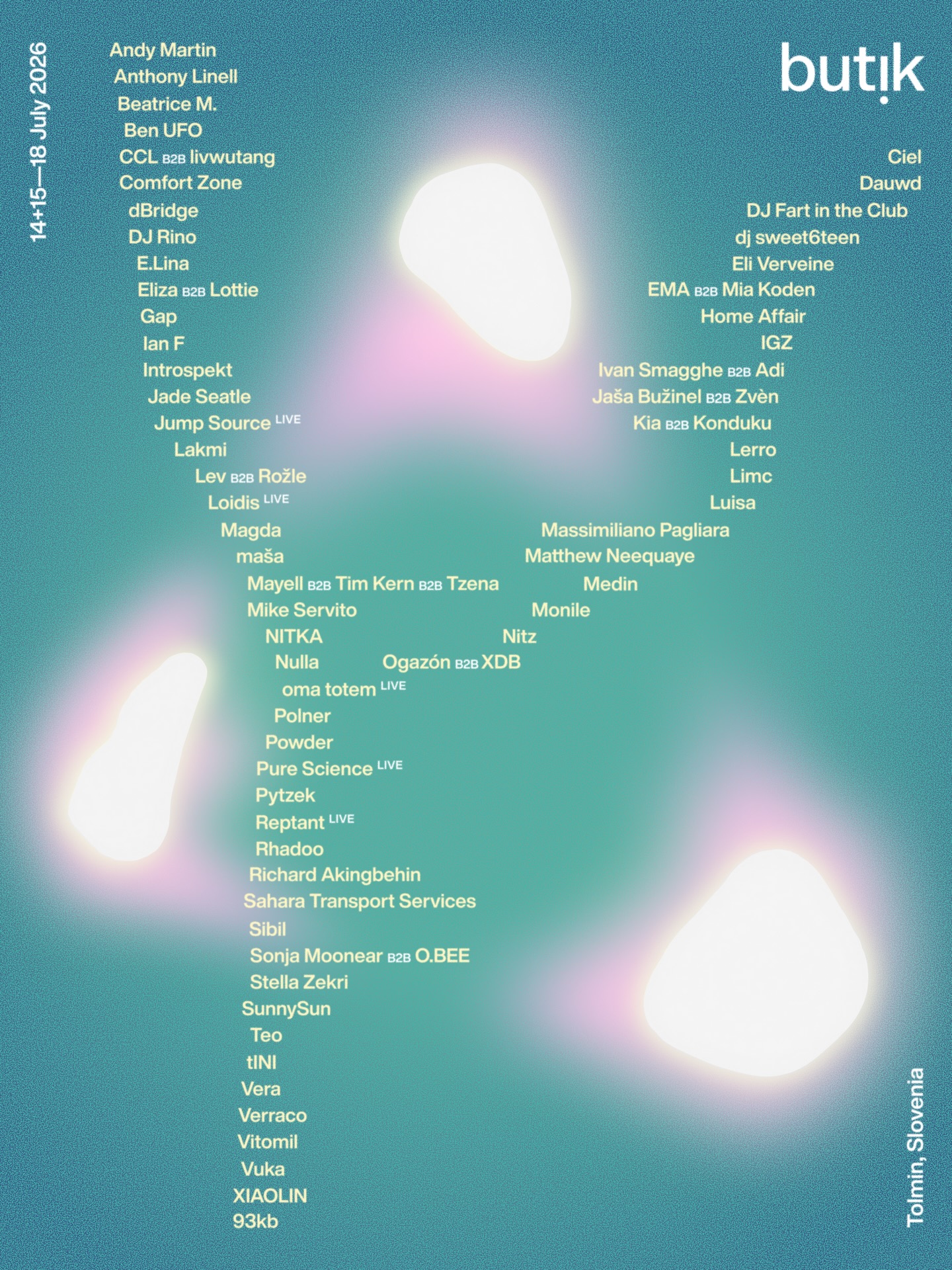 Butik je elektronski festival koji se održava u slovenačkom gradiću Tolminu. Pored danonoćnih nastupa di-džejeva, festival nudi mogućnost kampovanja kao i plivanja u obližnjoj reci.