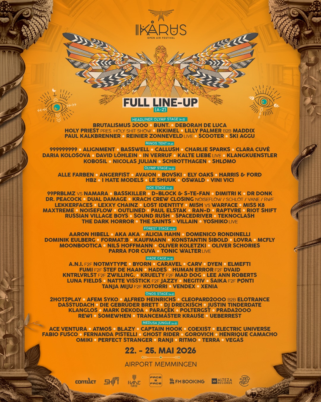 Ikarus se odvija na idiličnoj i podjednako jedinstvenoj lokaciji: bivšem vojnom aerodromu, prošaranom bujnim šumama i mračnim skloništima. Savršeno za muzički spektakl kakav nikada ranije niste doživeli. Bezbroj nacionalnih i međunarodnih izvođača koji pružaju najbolji elektronski zvuk na 7 bina svih vrsta do ranih jutarnjih sati.