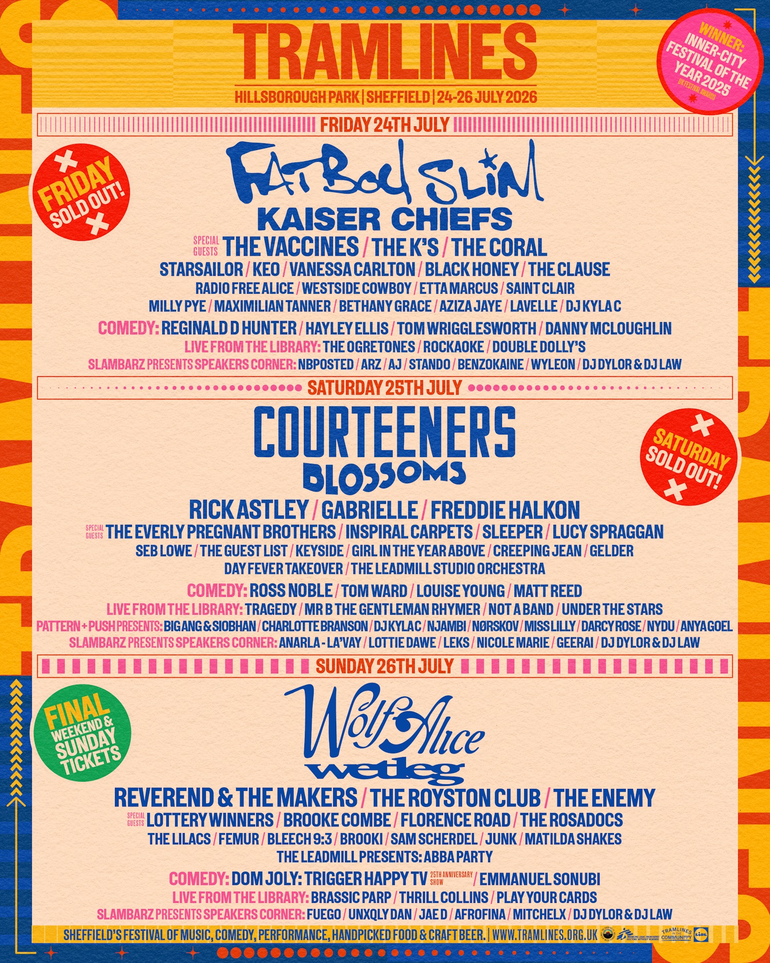 Tramlines je poznati rok, indie i pop festival koji se održava u Hillsborough Parku, u Šefildu. Pored vrhunskog muzičkog programa, organizatori pružaju posetiocima nastupe komičara, pop-up filmske projekcije, kao i prošireni prostor namenjem porodicama uz lokalnu hranu i piće.