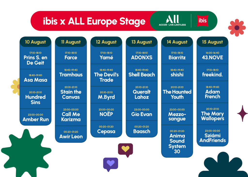 Europe Stage će biti domaćin brojnim talentovanim izvođačima među kojima su Amber Run, The Haunted Youth, Queralt Lahoz, Call Me Karizma, Shell Beach, M. Byrd i drugi…