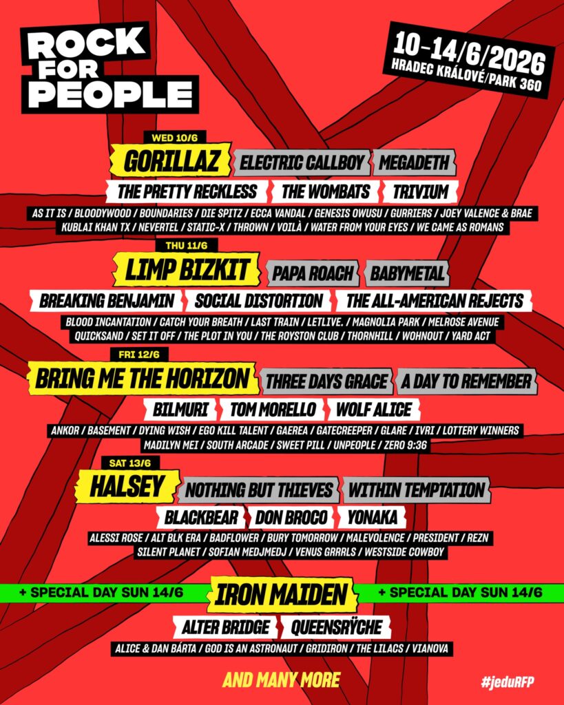 Naredno, slavljeničko izdanje Rock for People festivala biće održano od 10. do 14. juna u Parku 360 u češkom gradiću Hradec Kralove. Organizatori obećavaju najveće internacionalne i lokalne zvezde, kao i mnoštvo mladih i neotkrivenih talenata iz čitavog sveta. Ulaznice se već nalaze u prodaji, a više informacija o cenama i različitim načinima smeštaja možete pronaći na zvaničnom festivalskom sajtu.