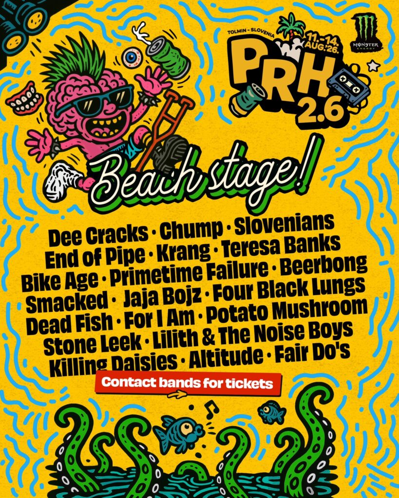 Dakle, na drugoj po veličini pozornici u Tolminu sviraće austrijski DeeCRACKS, End of Pipe iz Brazila, američki Chump, te nemački bendovi Bike Age i Primetime Failure. Na spisku su i finski sastav Teresa Banks, italijanska ekipa BeerBong i Slovenians iz Belgije, kao i Krang iz Češke.