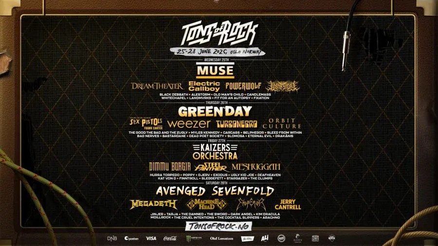 Jedanaest izdanje Tons of Rock festivala na programu je od 25. do 28. juna u Ekebergu, jugoistočnom delu Osla. Sa preko 100 hiljada posetilaca, ovo je ne samo najveći rock i metal festival u Norveškoj, već najveći bez obzira na muzički žanr. Ulaznice se već nalaze u prodaji, a više informacija o različitim cenovnim kategorijama, kao i o mogućnostima kampovanja možete pronaći na zvaničnom festivalskom sajtu.