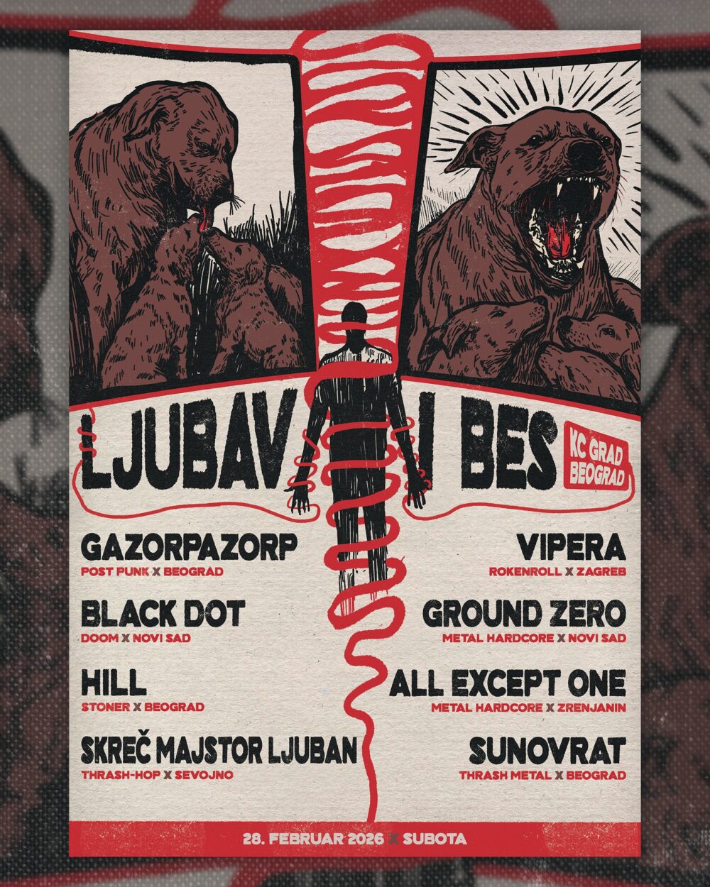 Koncept je taj da će biti napravljene dve bine koje će raditi istovremeno: bina LJUBAV i bina BES. LJUBAV će biti u KC Gradu (dole). Na toj bini nastupiće Gazorpazop, Hill, Black Dot i Skreč Majstor Ljuban. BES bina će biti uspostavljena u potkrovlju, a na njoj će se smenjivati Vipera, Ground Zero, All Except One i Sunovrat.